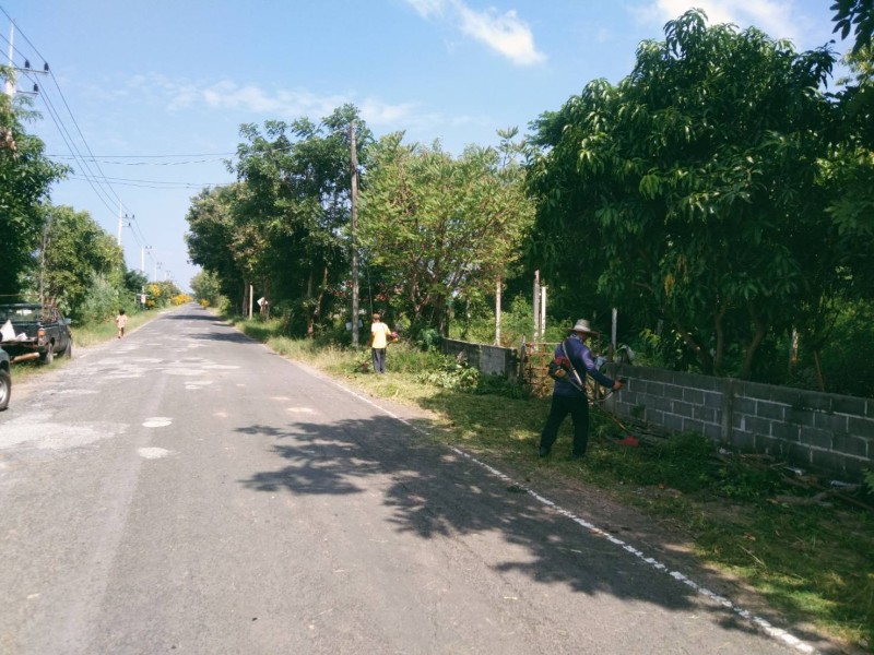 ทีมงานพัฒนา ลงพื้นที่ดำเนินการพัฒนาด้วยการตัดหญ้า ตัดแต่งกิ่งไม้ และเก็บกวาดเศษขยะบริเวณริมถนนเขตชุมชน เพื่อให้แลดูสะอาด ร่มรื่น สวยงาม