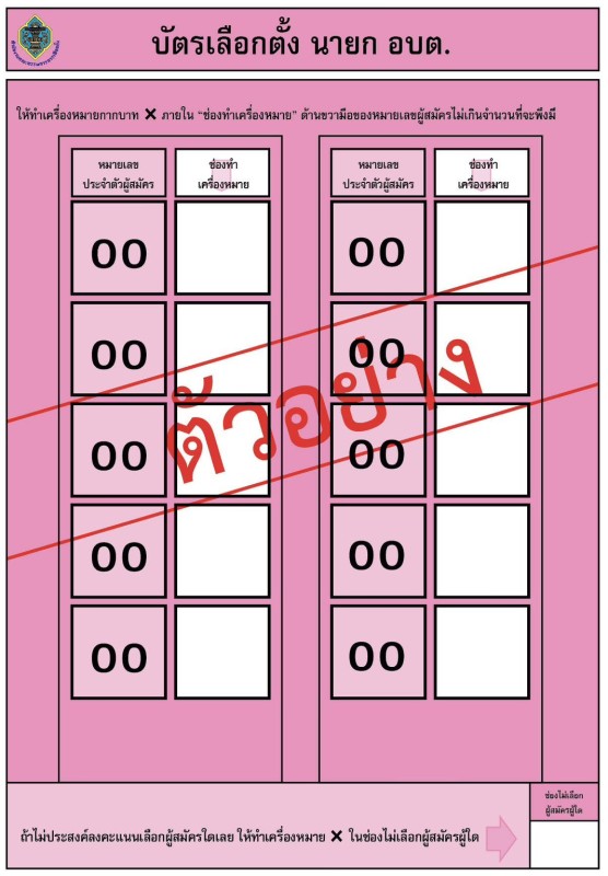 หัวข้อ :: ตัวอย่างบัตรเลือกตั้งสมาชิกสภาองค์การบริหารส่วนตำบลและนายกองค์การบริหารส่วนตำบล