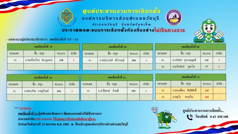 หัวข้อ :: ประกาศผลคะแนนการเลือกตั้งท้องถิ่น 2569
