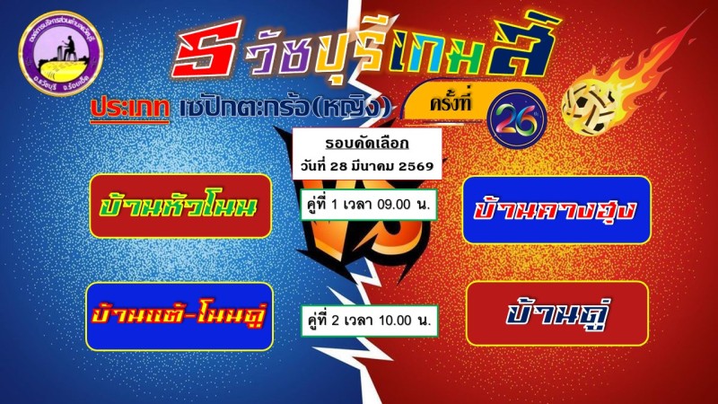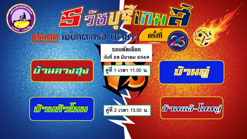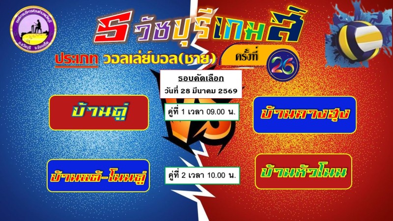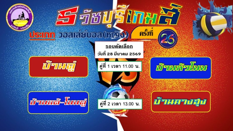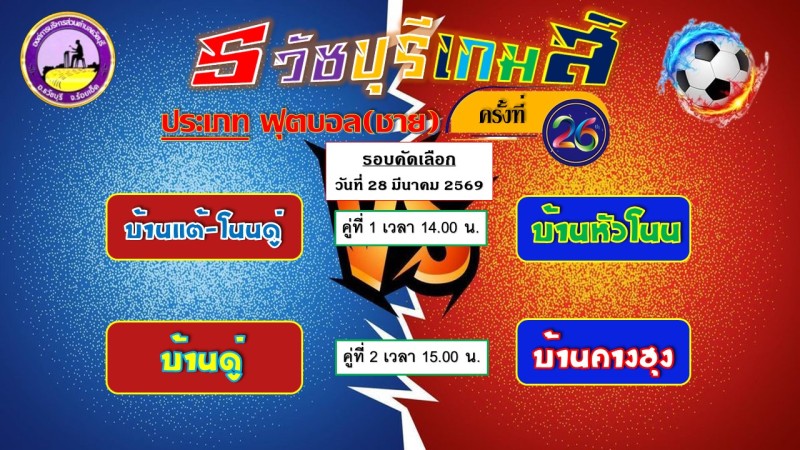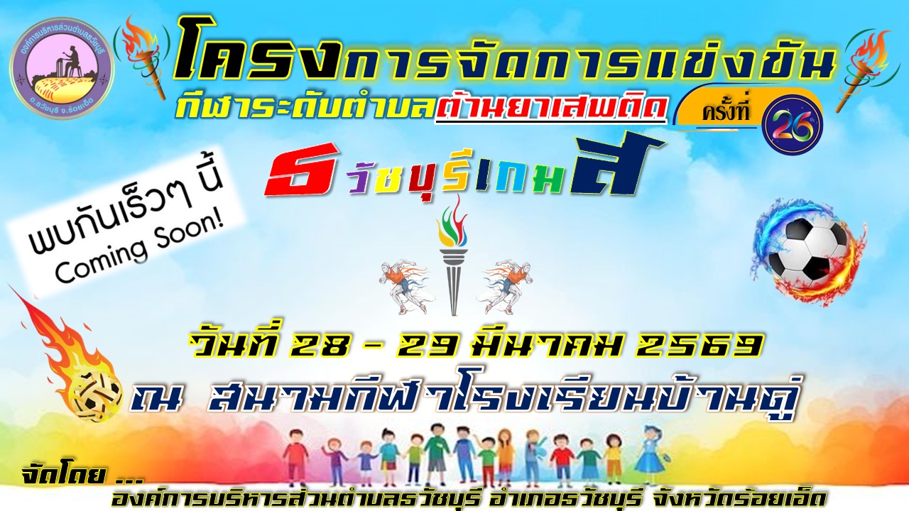 องค์การบริหารส่วนตำบลธวัชบุรี ขอเชิญชวนพี่น้องชาวตำบลธวัชบุรีทุกท่าน เชิญร่วมชมและเชียร์การแข่งขันกีฬาต้านยาเสพติด "ธวัชบุรีเกมส์ ครั้งที่ 26 ประจำปี 2569" ระหว่างวันที่ 28 - 29 มีนาคม 2569 ณ สนามกีฬาโรงเรียนบ้านดู่ ตำบลธวัชบุรี อำเภอธวัชบุรี จังหวัดร้อยเอ็ด ประเภทกีฬาที่แข่งขัน